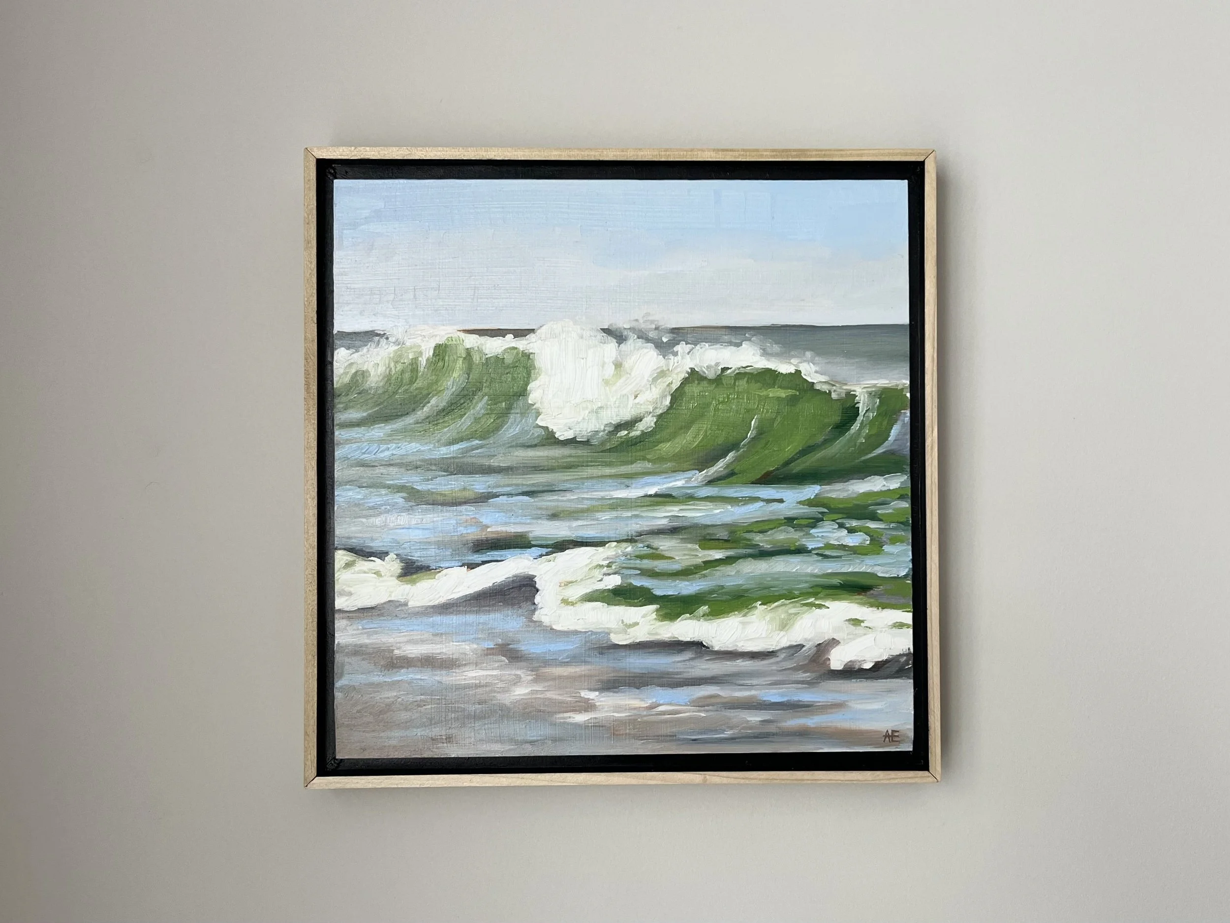 All paintings are installed in a hand-made, complementary natural wood floater frame upon purchase.